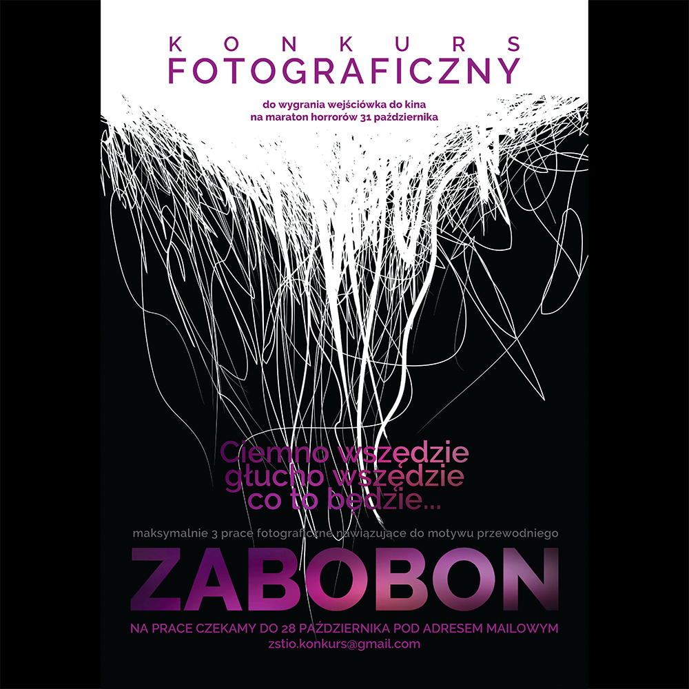 Zapraszamy do wzięcia udziału w konkursie fotograficznym, można wysłać (na adres zstio.konkurs@gmail.com) maksymalnie 3 prace nawiązujące do przewodniego hasła "Zabobon". Nagroda główna: wejściówka na maraton horrorów. Organizatorzy: Piotr Mojsak, Hubert Pilcicki, Katarzyna Wołkowycka