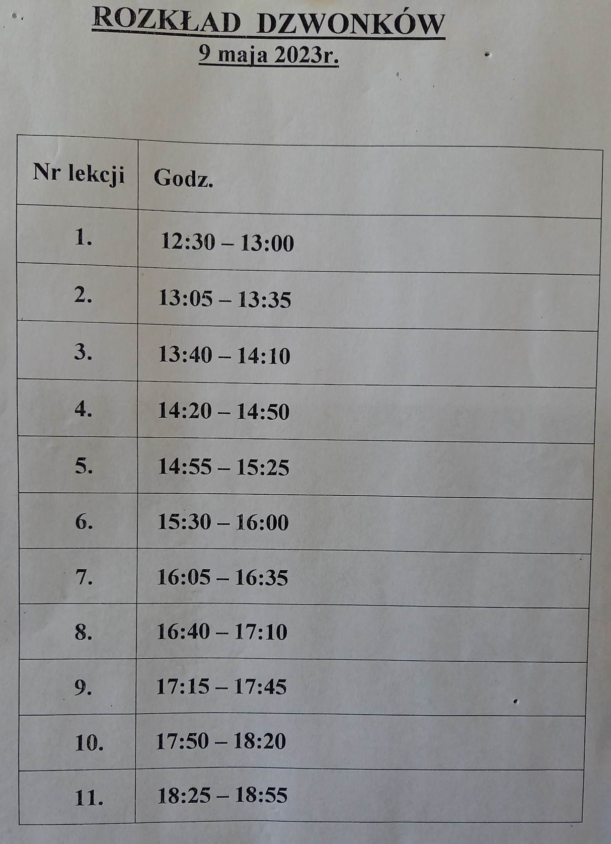 Przeczytaj więcejW związku z trwającymi egzaminami maturalnymi 9 maja 2023 r. zajęcia odbywają się wg harmonogramu.