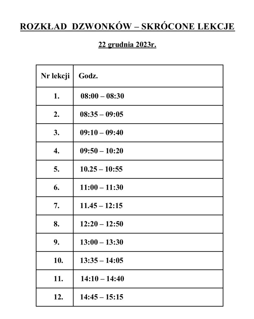 Skrócone lekcje 22.12.23r.