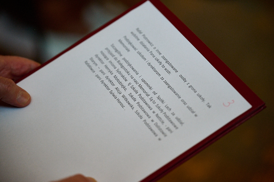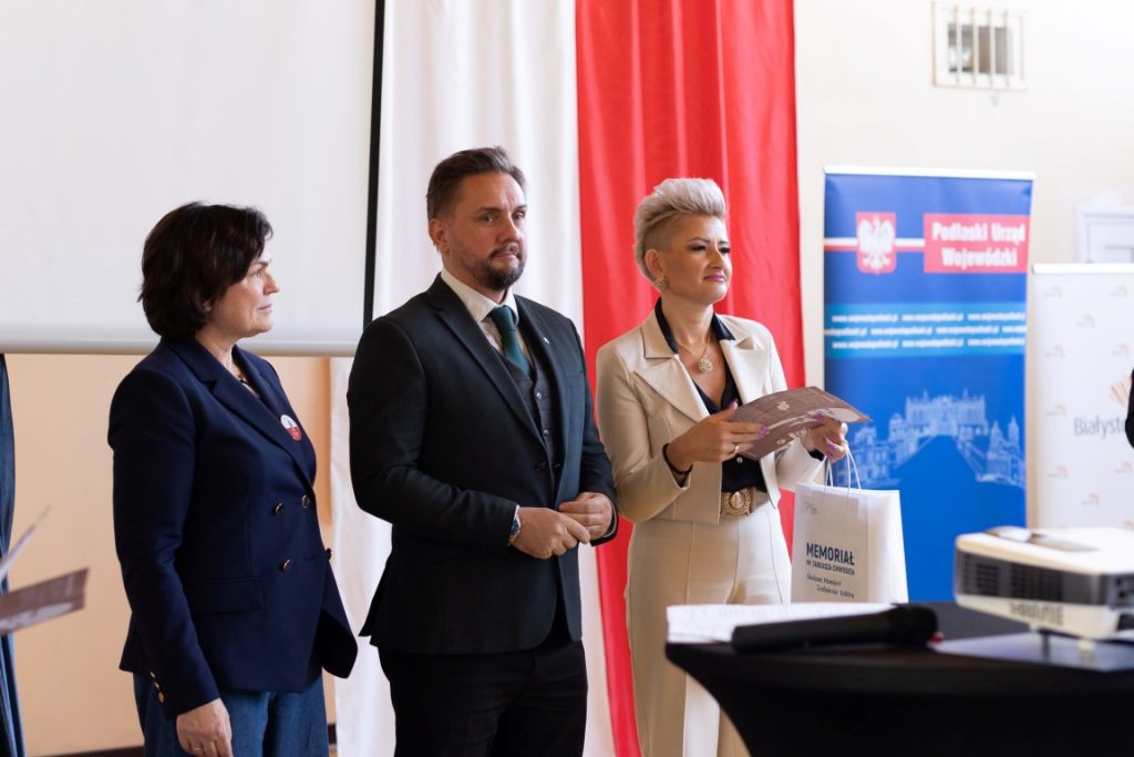 Tego dnia byli z nami: pan Paweł Krutul Wicewojewoda Podlaski, pani Agnieszka Krokos-Janczyło – Podlaski Kurator Oświaty, pani Beata Laskowska Wicekurator Oświaty, pan Jerzy Bołtuć – Prezes Podlaskiego Stowarzyszenia Zesłańców Sybiru i pełnomocnik Wojewody Podlaskiego do spraw kombatantów i osób represjonowanych, pan Cezary Rutkowski Prezes Wspólnoty Wnuków Sybiraków, dr Piotr Popławki z Muzeum Pamięci Sybiru, licznie zebrani Sybiracy, kombatanci, dyrektorzy szkół, nauczyciele z całego województwa oraz młodzież.