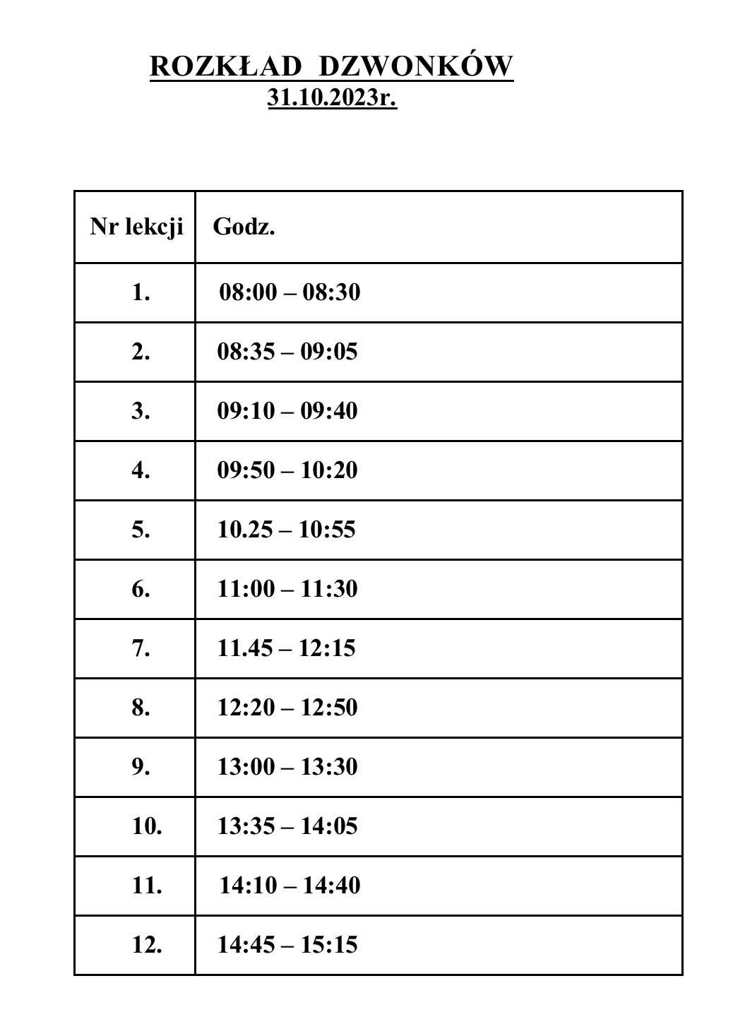Przeczytaj więcej[vc_row][vc_column][vc_column_text] Rozkład dzwonków 31.10.2023r. [/vc_column_text][/vc_column][/vc_row]